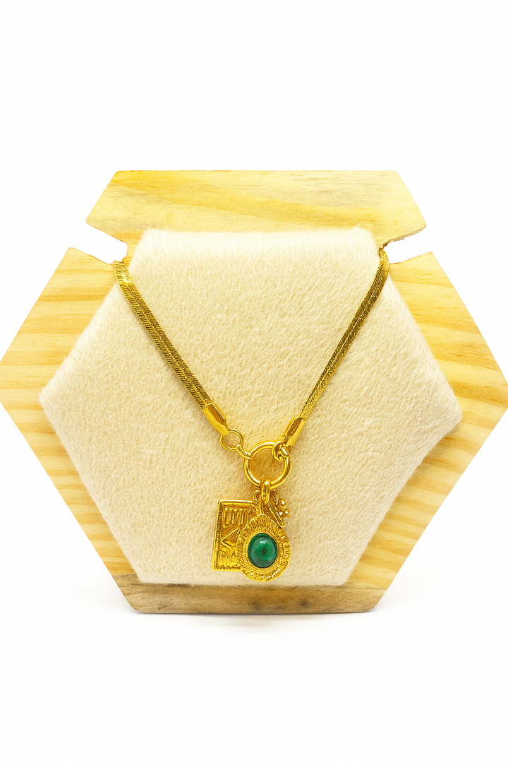Gold-Plated Coin Charm Pendant Necklace – Green Stone Accent