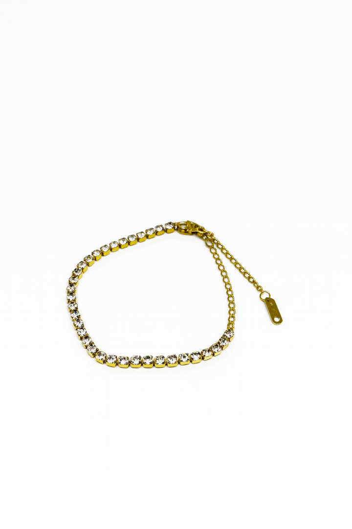 Show off elegant sparkle with this gold-plated anklet featuring a single strand of dazzling crystals, designed to lift any look with subtle glamour.