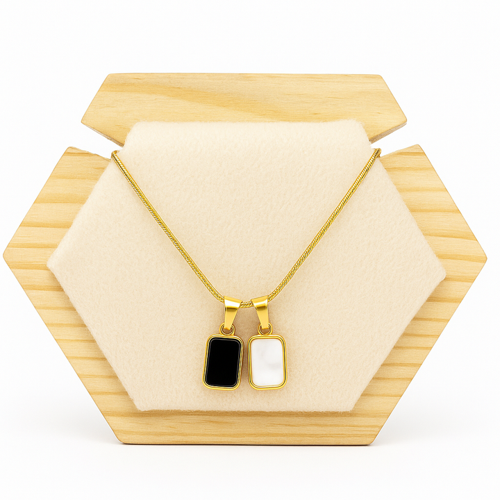 Gold-Plated Dual Rectangular Pendant Necklace – Black & White Enamel Charms, Hypoallergenic