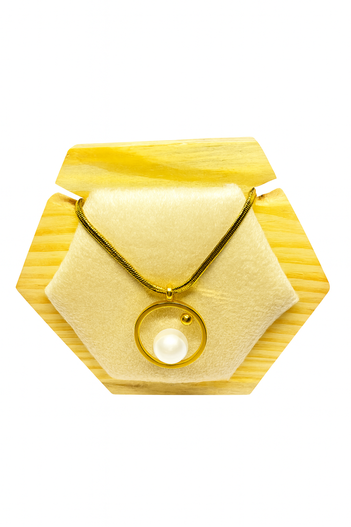 Embrace timeless beauty with this elegant gold-plated circle pendant necklace, adorned with a lustrous pearl centerpiece. Symbolizing luxury and grace, this minimalist design effortlessly elevates any ensemble—perfect for special occasions or everyday glamour.
